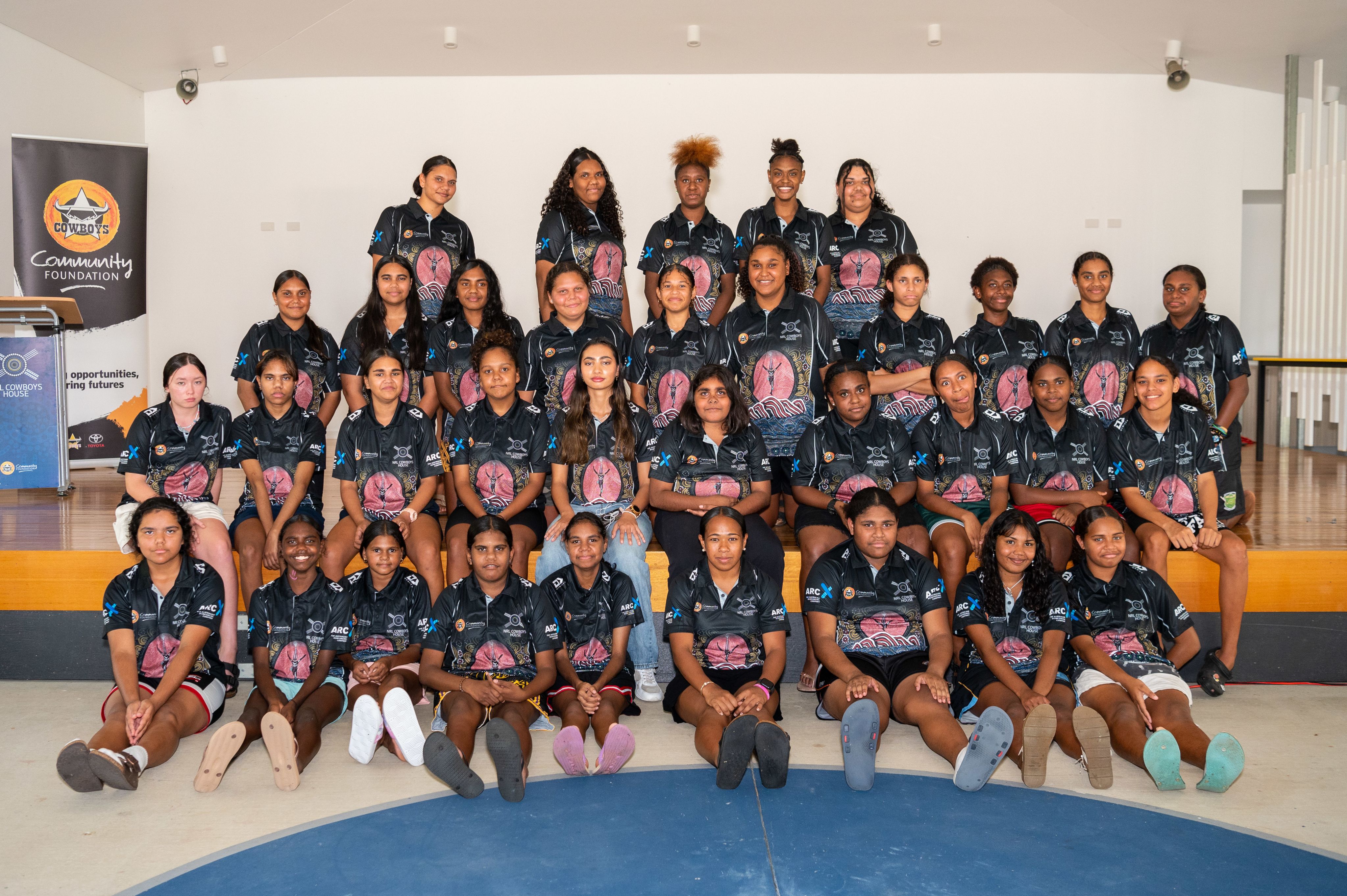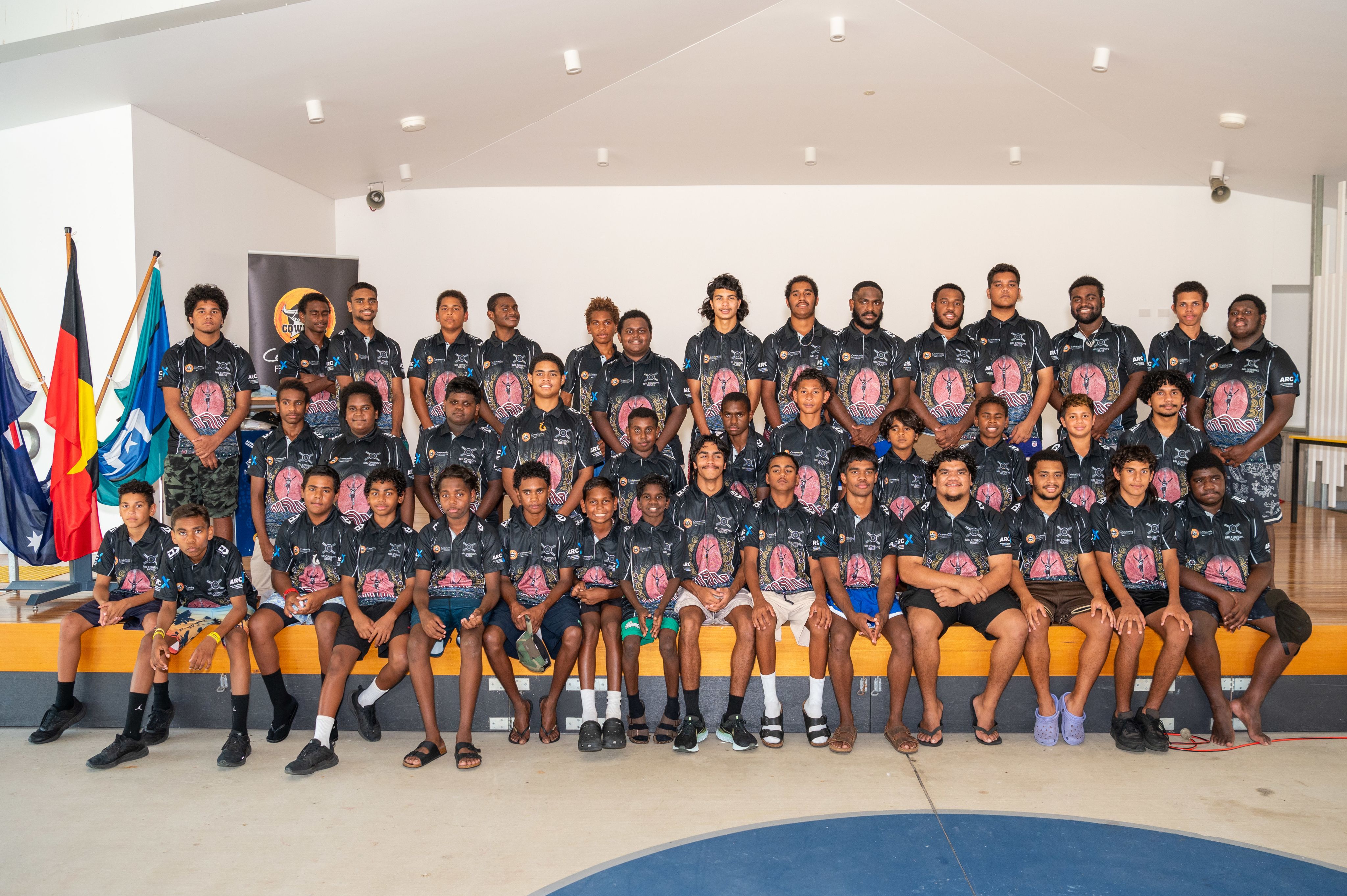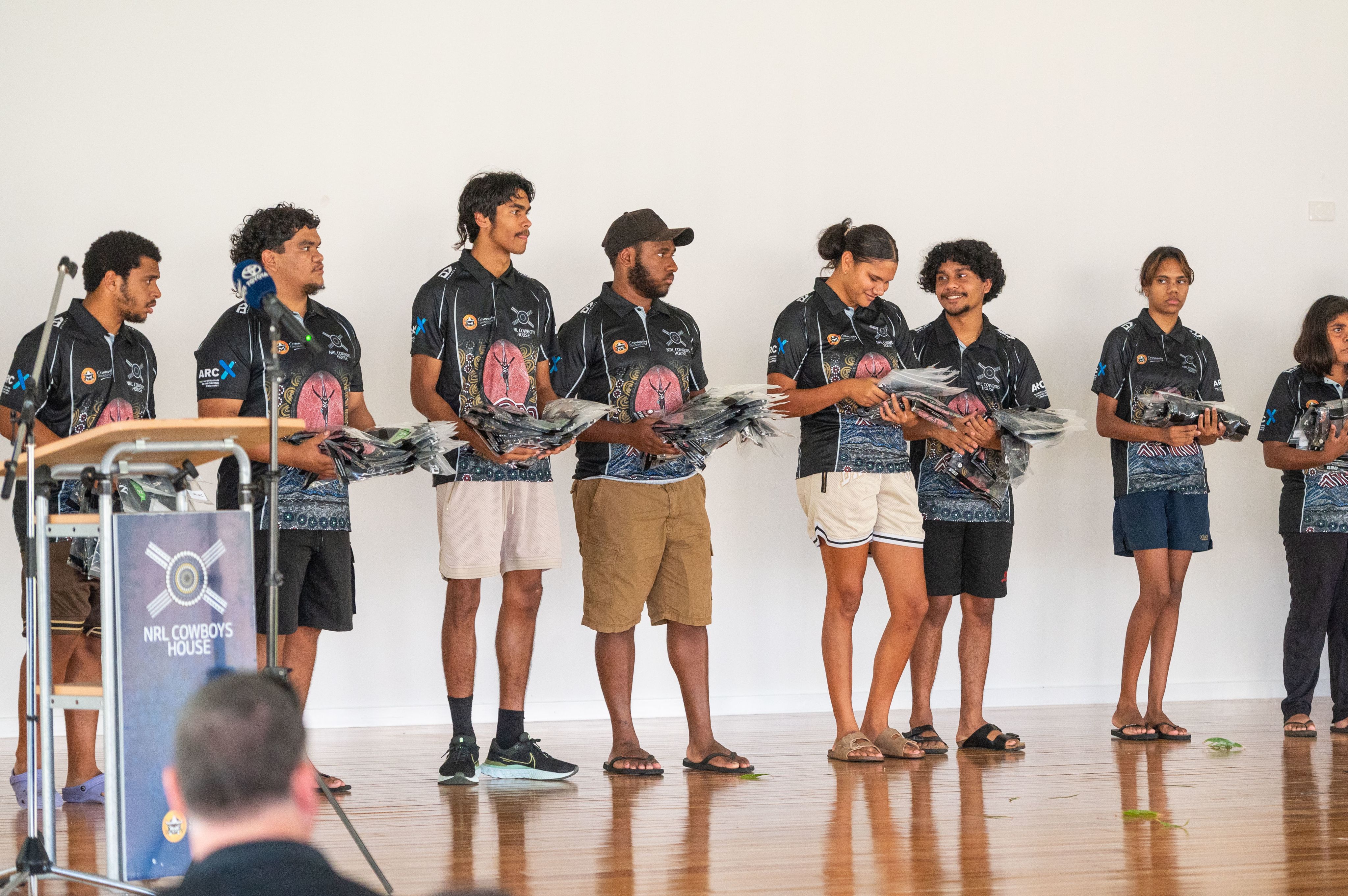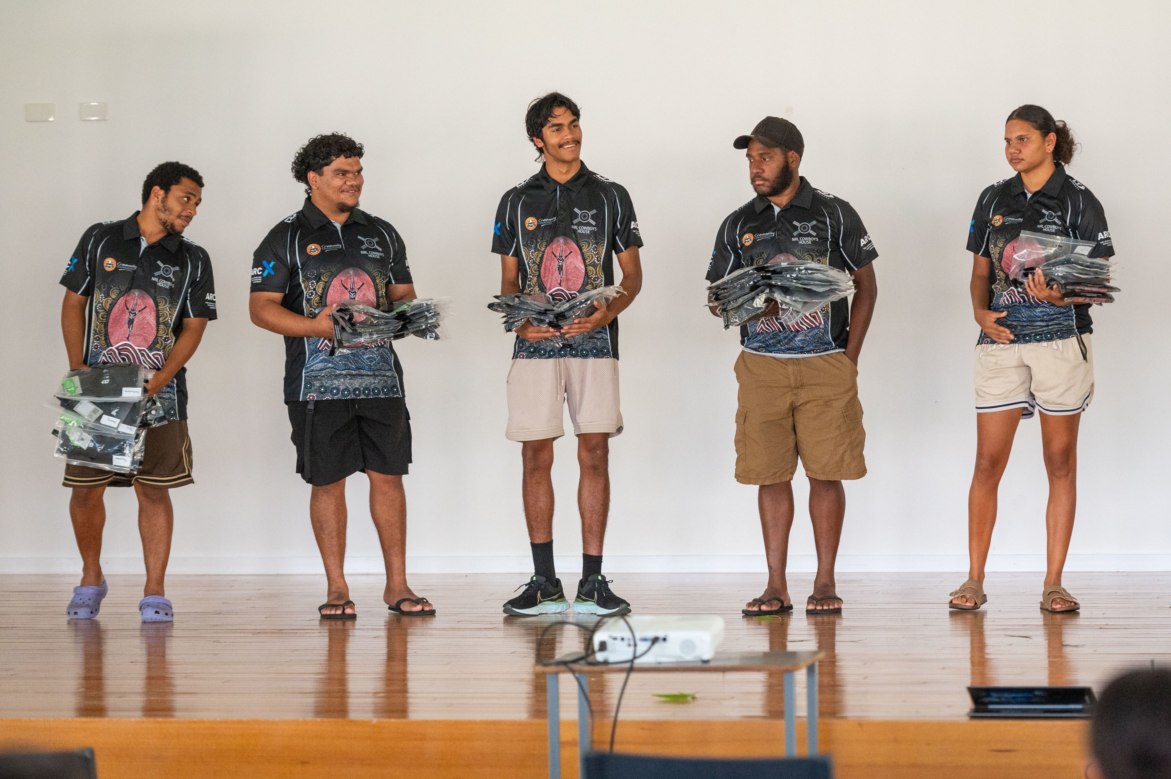 The unveiling of the artwork at NRL Cowboys House included the presentation of the official House polo to students, with young people in year 12 tasked with handing out the shirts to their younger peers.